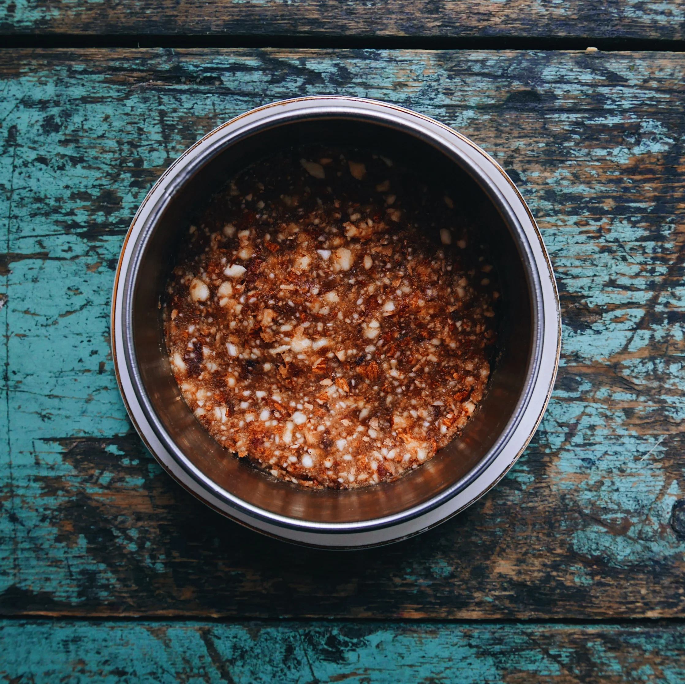 Blend in food processor or blender. Blend until sticky and well mixed. (You may need to add a touch more water if your blender keeps getting stopped up)