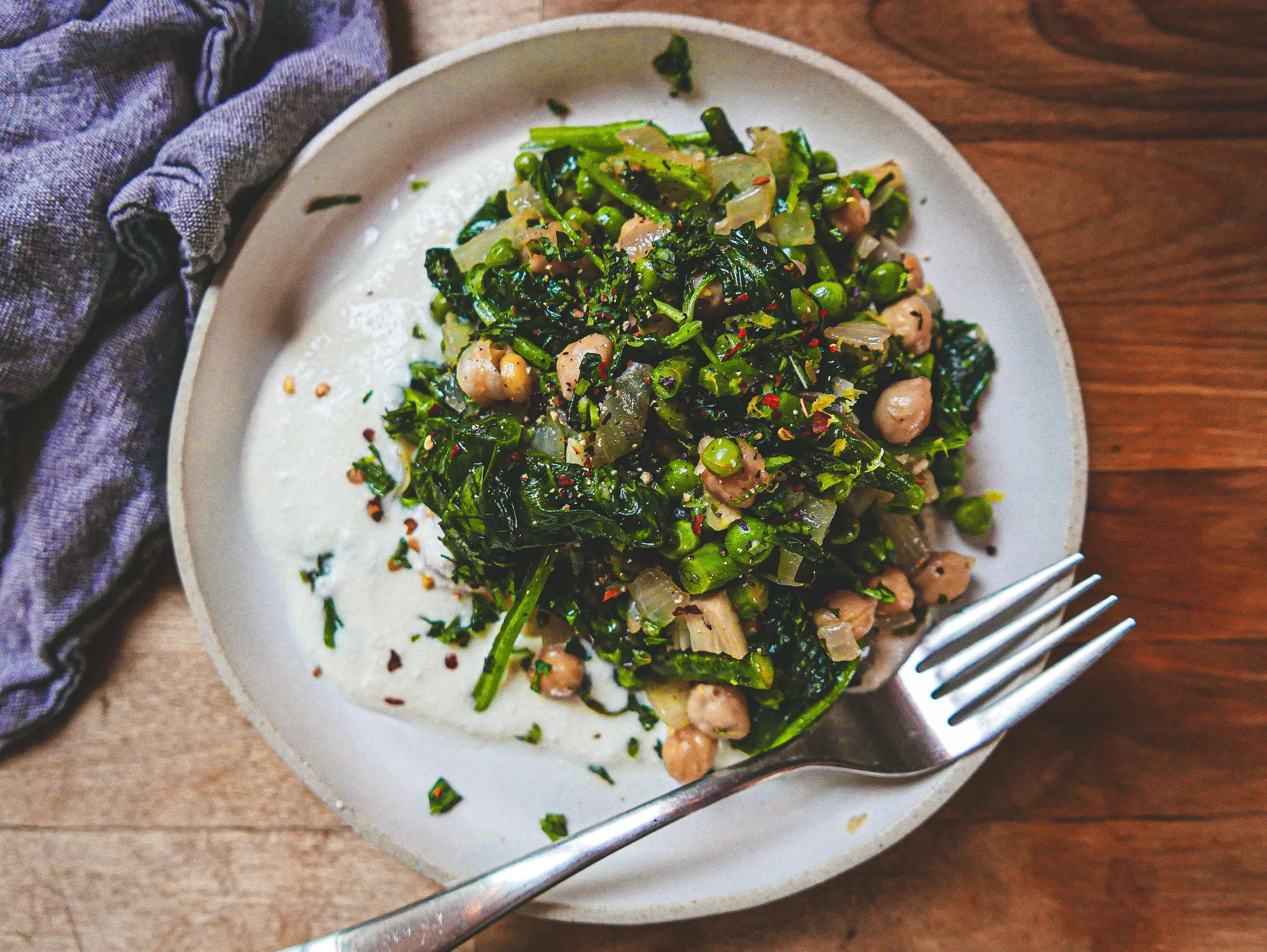 spring greens with lemon + ricotta